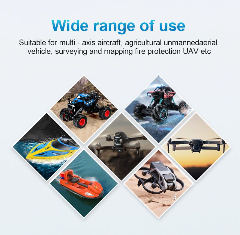 Відповідь: Підходить для безпілотників, транспортних засобів RC, безпілотних човнів, медичного обладнання та систем зберігання енергії.