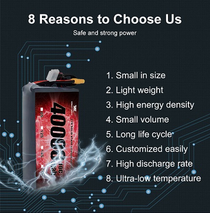 Батареї літієвого полімеру (ліпо) вже давно є вибором для застосувань безпілотників через їх високу щільність енергії та швидкість розряду. Однак для важких безпілотників вдосконалені ліпо-рецептури або альтернативні хімічні речовини можуть запропонувати найкращі показники.