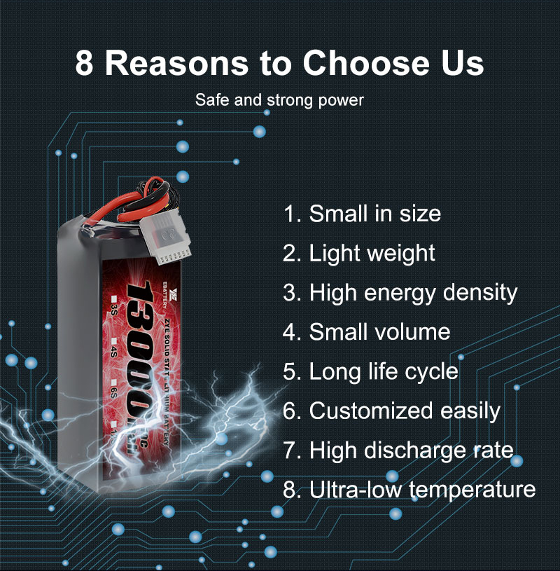Збільшення щільності енергії:Твердотільні батареї можуть зберігати більше енергії на одиницю ваги, що забезпечує більш тривалу потужність у менших пакетах.